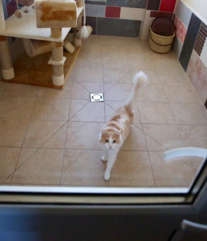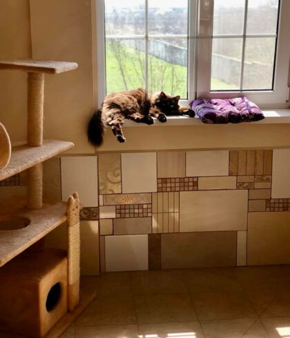 На втором этаже располагаются просторные комнаты. В каждой из них есть окно с защитной решеткой и москитной сеткой. Эти апартаменты прекрасно подходят для котов.